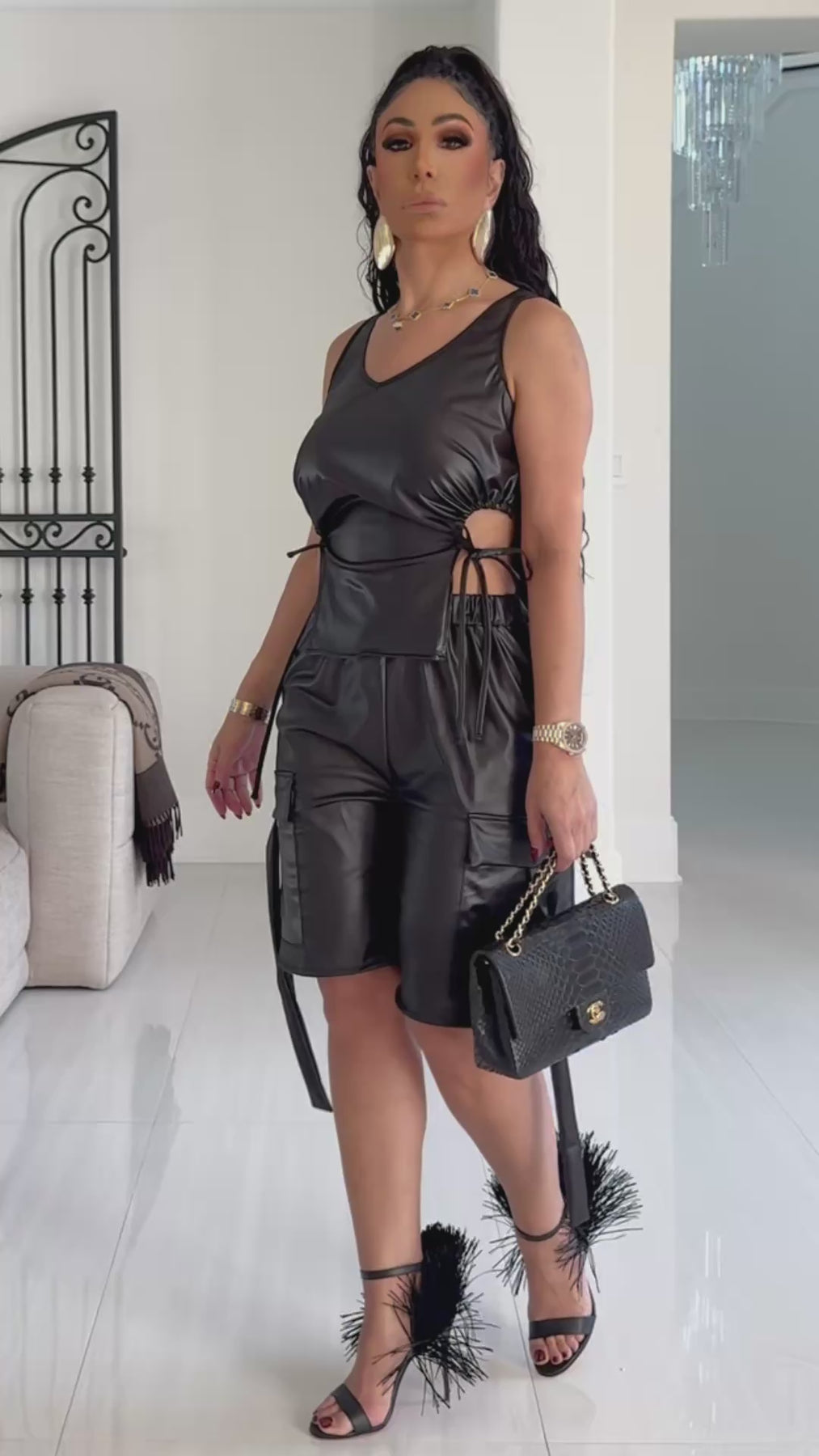 - Sleeveless Top with Open Side Drawstring Details paired with Baggy Cargo Shorts